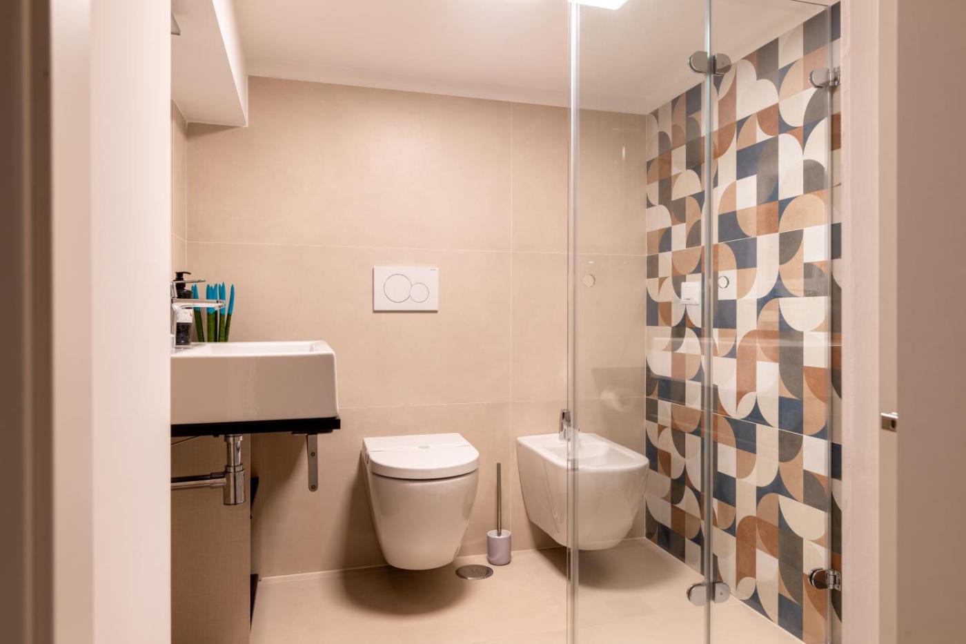 Two-Bedroom Apartment. The air-conditioned apartment features 2 bedrooms and 1 bathroom with a shower and a bidet. In the well-fitted kitchen, guests will find a stovetop, a refrigerator, kitchenware and an oven. The apartment provides a flat-screen TV with streaming services, a washing machine, soundproof walls, a tea and coffee maker as well as ancourtyard view. The unit offers 3 beds.