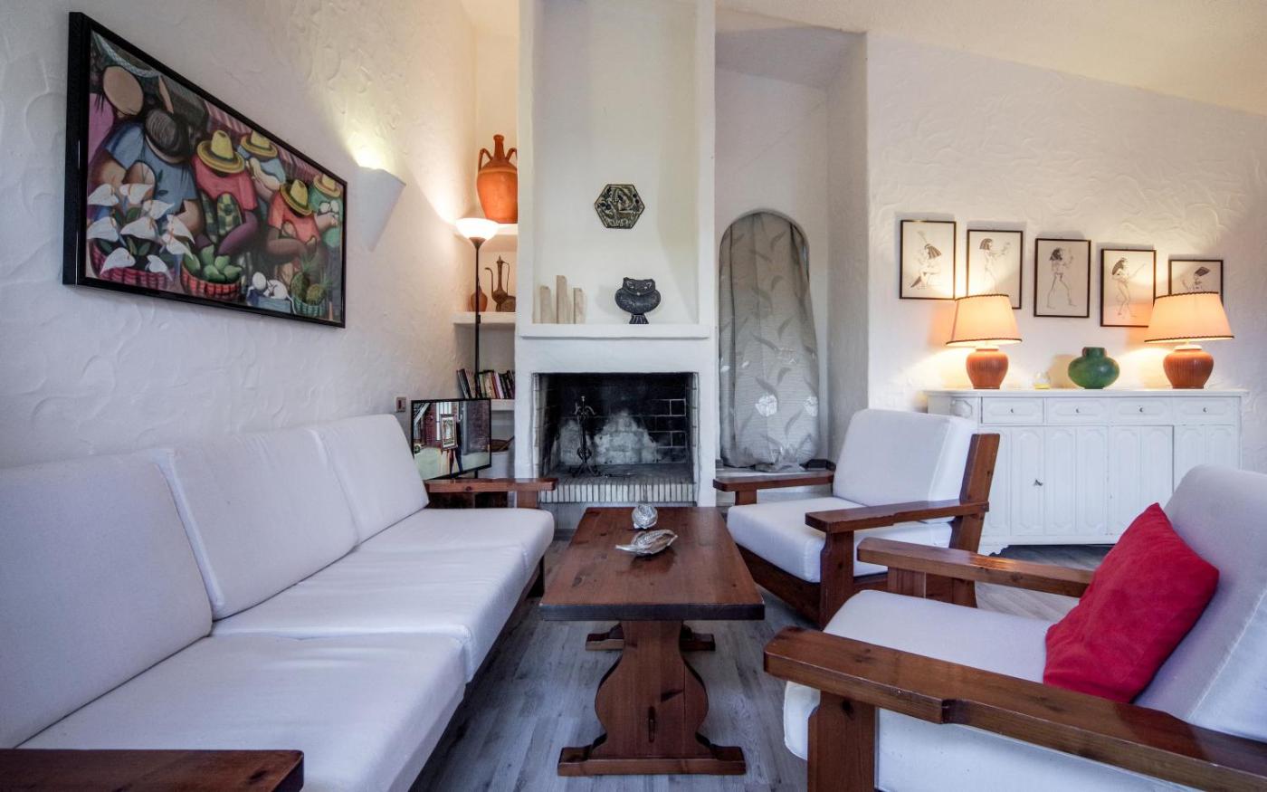 Villa. The fireplace is the standout feature of this villa. Boasting a private entrance, this air-conditioned villa includes 1 living room, 3 separate bedrooms and 2 bathrooms with a shower and a bidet. Guests will find a stovetop, a refrigerator, a dishwasher and kitchenware in the well-fitted kitchenette. The villa also features a barbecue. Featuring a terrace with sea views, this villa also offers a washing machine and a flat-screen TV with satellite channels. The unit has 5 beds.