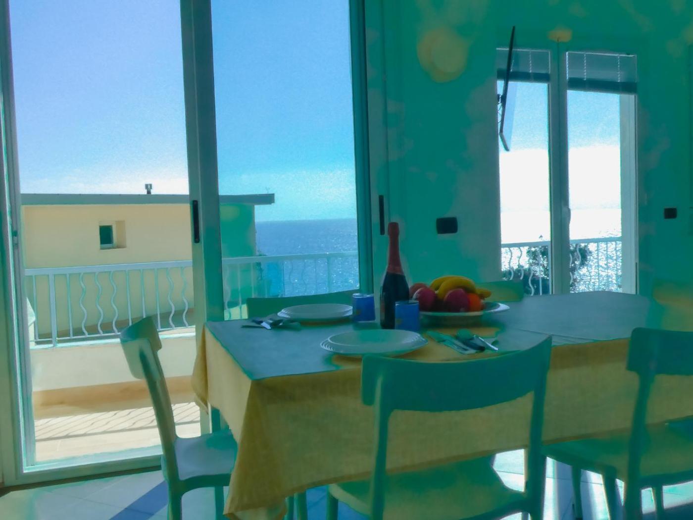 The spacious apartment with a terrace and sea views has 2 bedrooms, a living room, a flat-screen TV, an equipped kitchenette with a dishwasher and an oven, and 1 bathroom with a bidet. Towels and bed linen are available in the apartment. The property has an outdoor dining area.