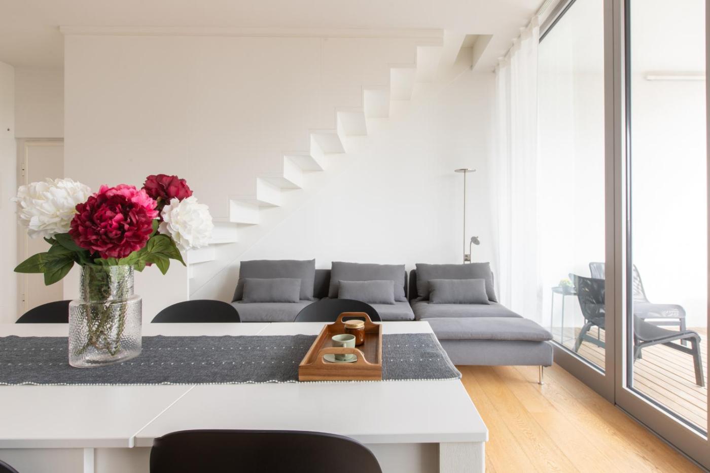 Penthouse Apartment. The sauna is a top feature of this apartment. This spacious apartment comes with 1 living room, 3 separate bedrooms and 2 bathrooms with a shower and free toiletries. In the kitchen, guests will find a stovetop, a refrigerator, a dishwasher and kitchenware. This apartment is air-conditioned and has a seating area with a flat-screen TV, a washing machine, a tea and coffee maker, a dining area, as well as a wardrobe. The unit has 3 beds.