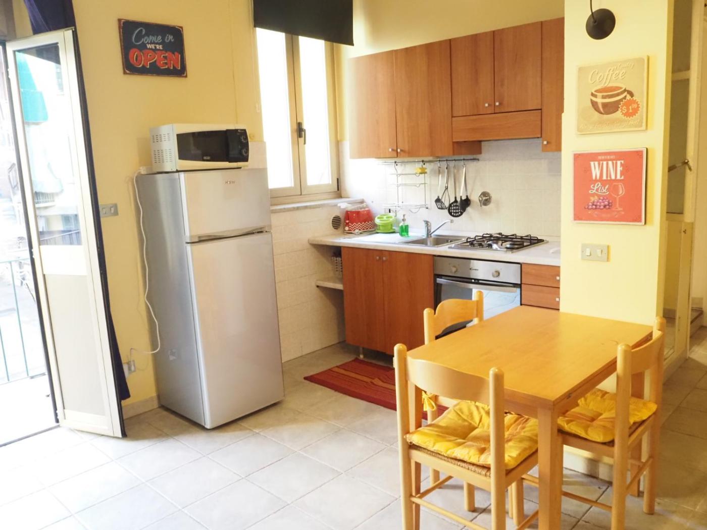 Studio Apartment with One Double Bed. This air-conditioned apartment features 1 living room, 1 separate bedroom and 1 bathroom with a shower. Meals can be prepared in the kitchen, which has a stovetop, a refrigerator, kitchenware and an oven. Boasting a balcony with ancourtyard view, this apartment also features a washing machine and a flat-screen TV. The unit has 2 beds.